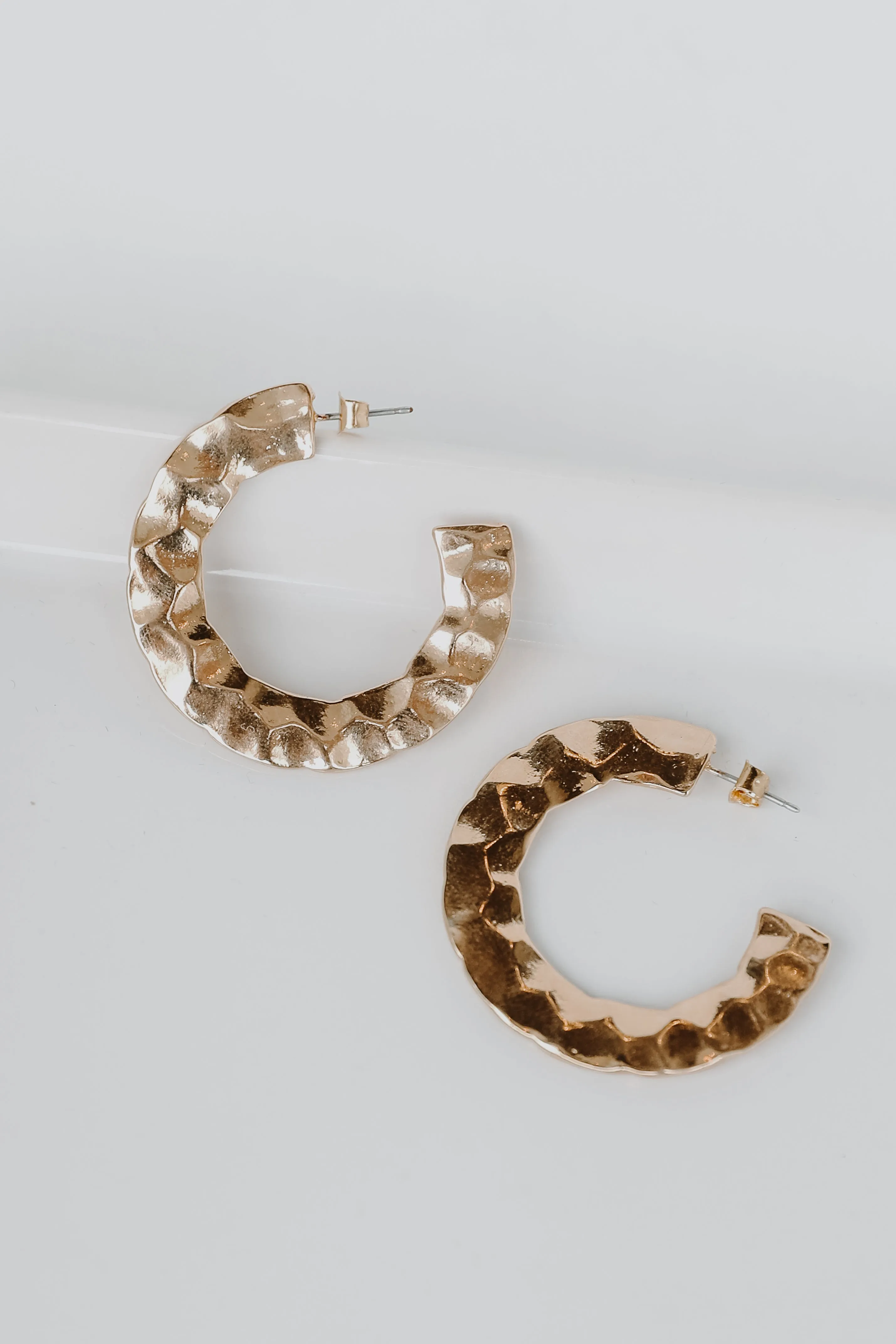 Upgrade yourself to V.I.P with the Reece Gold Hammered Hoop Earrings! These trendy earrings are designed with a hammered gold hoop style with stud post backs! Style the Reece Hoops for any occasion to instantly elevate your outfit!